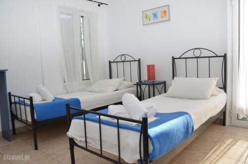 Hermes Studios is a family business which is located in the center of Tinos island, in a quiet road, named Evangelistrias street, 5 minutes from the Virgin Mary’s Church on foot and 2 minutes from the old port. Nearby there are restaurants, cafes, bars and supermarkets easily accessible for the visitor. It is a typical Cycladic building with all traditional aspects of Cycladic architecture. The careful design of the rooms, the cleanliness and also the feeling of warm hospitality will impress you. Each room is named after a beach of the island and it is equipped with air conditioning, a TV and a shower stall. The rooms have a balcony or a window.