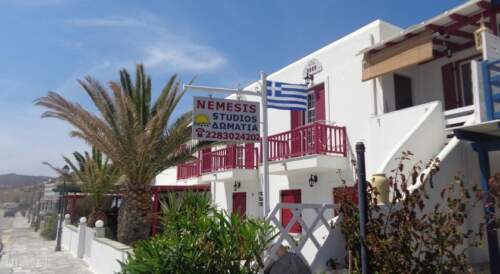 The beachfront Nemesis Studios is located just 10 yards from Kionia Beach and 1.2 miles from the centre and port of Tinos. It offers bright and air-conditioned studios with direct views of the Aegean Sea from their balconies.All studios at Nemesis are simply furnished featuring a kitchenette with cooking rings, electric kettle and mini fridge. They are also equipped with a TV and have an en-suite bathroom with shower.The nearest bus stop is 50 yards away from the property, while an organized beach can be found at 100 yards. Bars and traditional taverns serving local cuisine are 50 yards away. Free Wi-Fi throughout is available.