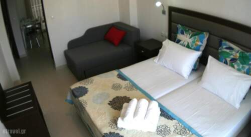 The family-run Mare D’Oro is located in Sarti village of Sithonia, within 50 meters from the sandy beach and a short walk from restaurants and shops. It offers self-catering accommodation with free Wi-Fi and a private balcony. Overlooking Itamos Mountain, the studios of Mare D’Oro are fitted with tiled floors and modern furnishings. Each air-conditioned unit features a kitchenette with dining area, fridge and a small electric oven. A flat-screen TV is also available. The lively Neos Marmaras village is 31.1 miles from Mare D’Oro, while the village of Toroni with its sandy beach is at 18.6 miles. Thessaloniki International airport is 80.2 miles away. Free private parking is possible on site.