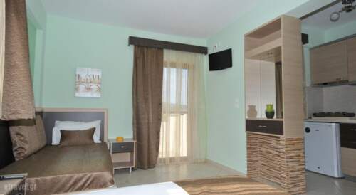 Offering studios with a balcony overlooking the garden and mountains, Rodon Garden 2 is located 200 meters from a sandy beach in Sarti, Chalkidiki. The property is 900 meters from the centre of Sarti with bars and restaurants. All air-conditioned studios feature a TV with satellite channels. Each has a kitchenette with fridge, coffee machine and electric kettle. The bathroom comes with a bath or shower. Free Wi-Fi is offered throughout. The beaches of Portokali and Kavourotrypes are at 3.7 miles. Rodon Garden 2 is 80.8 miles from Thessaloniki International airport.