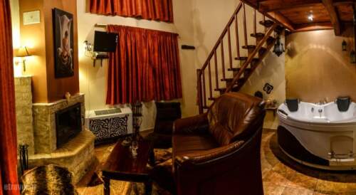 The Camelia Suites is located in the centre of Mesaia Trikala. Its romantic suites have hot tubs and patios with endless views across Ziria’s mountaintops and the Corinthian Gulf.The 2-storey suites are warmly decorated and individually heated. Their furnished living room has a fireplace and a flat-screen TV with DVD/CD player. Each has a fridge, toaster and coffee maker. Anatomic mattresses and free toiletries provide extra comfort, while in-room Wi-Fi is free.Guests can prepare their breakfast in the comfort of their room, with all breakfast essentials stocked in the cupboards and fridge. Local traditional taverns, cafe and shops are just 20 yards from the residence.The area also offers opportunities for activities, such as hiking, trekking and climbing. Korinthos is at 39.8 miles and Ksilokastro at 16.8 miles.