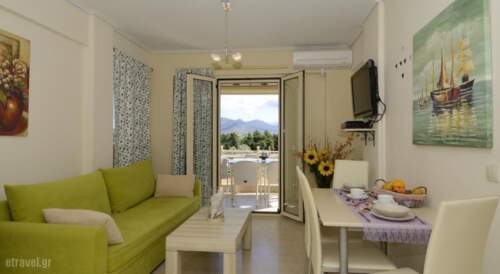 Located 350 yards away from Lygia Beach, Gea Villas offers fully equipped accommodation with views over the Ionian Sea or the surroundings tree-covered hills. It has a garden with BBQ facilities and offers free Wi-Fi throughout.Featuring a private entrance, the modernly furnished Gea apartments and maisonettes open out to sea-view verandas or furnished patios. Each has a living room with a satellite LCD TV and a fully fitted kitchen including an espresso machine and a waffle maker.Gea’s staff offers free transportation from the main town of Lefkada. Private on-site parking is also provided free of charge.Within walking distance, guests can reach the centre of Lygia village featuring fish taverns and mini markets. Lefkada main town is at 3.1 miles and the port of Nydri connecting to Meganisi Island is at 6.8 miles.