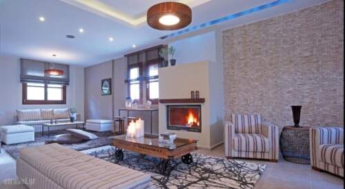 Featuring a tastefully decorated bar with sofas and a fireplace, the traditionally-built Pilion Terra Hotel is located in Pilion, between Makrynitsa and Portaria Village. It has a room with billiards, an outdoor and an indoor children’s playground and a blossomed sun terrace. Elegantly decorated with modern furnishings and soft colours, the rooms and suites of Pilion Terra open out to a balcony overlooking Pilion Mountain and Makrynitsa Village. Each unit comes with a minibar, an LCD TV with satellite channels and a safe. Some units have a fireplace and a spa bath. A buffet breakfast enriched with traditional flavours is served daily at the dining area. Coffee, drinks and light meals can also be enjoyed at the relaxing setting of the bar throughout the day. Gluten free menus are also served. The municipal gym and football court are only 50 meters away. Pilion Terra Hotel is situated 6.8 miles from Volos town and 22.4 miles from Nea Anchialos National airport. The scenic centre of Portaria village is just 350 meters away, while the famous Choreyto village with its sandy beach is at 22.4 miles. Free private parking is possible on site.
