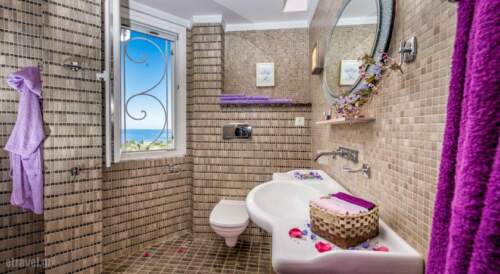 Featuring an outdoor pool, garden and free WiFi, Frido Luxury Villa is located in Zakynthos. Surrounded by olive groves on a green hill, it is 1.2 miles from Solomos square and the Venetian Castle. Overlooking the sea from its balcony, the luxurious, air-conditioned villa includes marble floors and iron beds. It has a seating area with flat-screen TV and DVD player. The kitchen is equipped with a microwave, oven and dishwasher. The bathrooms come with a bath, shower and free toiletries. Upon arrival, guests are greeted with a welcome pack including juice, coffee, various Zakynthian delicacies and bottled wine. Guests can enjoy sea and garden views from the terrace and relax on the veranda swing. The villa includes a library and games room. Frido Luxury Villa is 1.2 miles from Zakynthos town centre. Zakynthos airport is 4.3 miles away and a shuttle is offered free of charge.