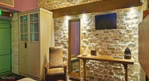 Set in the central square of Dilofo, the non-smoking Aithrio is a 17th-century mansion offering charming accommodation with wooden-beamed ceilings and fireplace. It has a snack bar and provides free Wi-Fi throughout. A common PC is also offered.Aithrio rooms and suites are stone built and decorated in earthy tones. They are all equipped with a Nespresso coffee maker, a flat-screen, satellite TV and minibar. The spacious bathrooms include a hydromassage shower cabin, bathrobes and slippers, while all units open out to a patio.Guests can sit at the traditional lounge area by the fireplace and enjoy a tasty homemade breakfast including bread, cakes, jams and pies. Later in the day, guest can have a light meal from the snack bar. Within walking distance you will find taverns serving local specialities.The picturesque village of Monodendri is 8.7 miles away and Kipoi is at 3.7 miles. The town of Ioannina is 21.1 miles away. Free parking can be found within 200 yards from the property as no cars are allowed in the village.