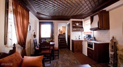 Tradition and comfort are combined in this complex of luxurious, self-catering houses, situated on the highest point (1,50 yards) of Asprageli village in Zagorochoria. Guests can sample fresh vegetables from the garden during summertime.Each uniquely coloured and named house has its own exterior space and unique views. The interior, two-storey setting features a spacious master bedroom with rustic furniture, feather duvets, stone-built walls and decorative mirror.The first floor features carved ceilings, handmade furniture, a fireplace and TV. You will also find a fully equipped kitchen and espresso machine.